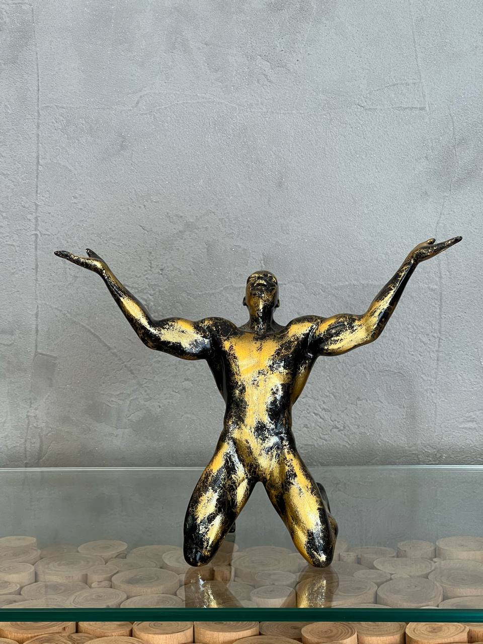 مجسمه دکوری رومیزی رزین فیگوراتیو مرد (مدل رهایی) صرفاً یک تندیس نیست؛ آن نقطه عطفی است که دکوراسیون شما کم دارد. این محصول وارداتی، نمادی قدرتمند از رهایی، موفقیت و اوج گرفتن است که با جزئیات هنرمندانه و خیرهکننده، هر میزی را به یک گالری خصوصی تبدیل میکند. این مجسمه از رزین فشرده و باکیفیت ساخته شده و با پوشش طلایی و مشکی پتینهکاریشده، حالتی کهنه و لوکس دارد. تصور کنید این تندیس را روی میز کنسول یا میز تلویزیون خود قرار دادهاید؛ درخشش ملایم طلایی آن، توجه هر بینندهای را به خود جلب میکند و حس شکوه و درام را به فضا میافزاید.